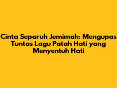Cinta Separuh Jemimah adalah sebuah lagu yang telah berhasil mencuri perhatian banyak pendengar musik di Indonesia. Lagu ini tidak hanya sekadar alunan melodi yang indah, tetapi juga sebuah karya yang mampu merangkum berbagai emosi manusia, terutama rasa sakit dan kesedihan akibat patah hati. Bagi kalian yang pernah merasakan bagaimana rasanya cinta tak sampai, lagu ini pasti akan terasa sangat relate. Mari kita bedah lebih dalam mengenai lagu yang dinyanyikan oleh Jemimah ini, mulai dari lirik lagu, makna, hingga pesan yang ingin disampaikan.