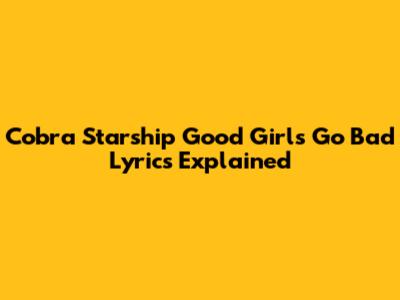 Cobra Starship Good Girls Go Bad Lyrics Explained