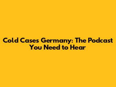 Cold Cases Germany: The Podcast You Need To Hear