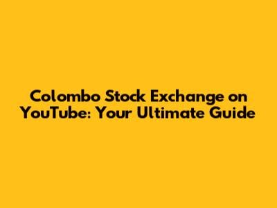 Colombo Stock Exchange On YouTube: Your Ultimate Guide