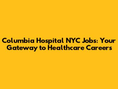 Columbia Hospital NYC Jobs: Find Your Healthcare Career