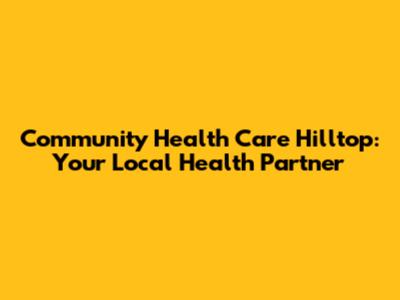 Community Health Care Hilltop: Your Local Health Partner