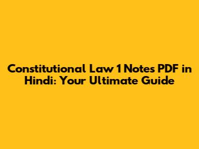 Constitutional Law 1 Notes PDF In Hindi: Your Ultimate Guide