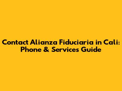 Contact Alianza Fiduciaria In Cali: Phone & Services Guide