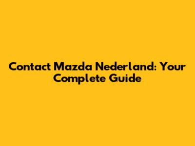 Contact Mazda Nederland: Your Guide