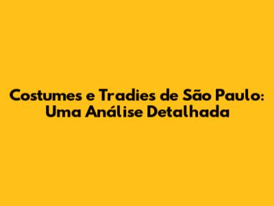 Costumes E Tradies De São Paulo: Uma Análise Detalhada