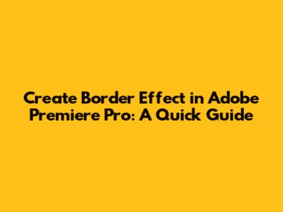 Create Border Effect In Adobe Premiere Pro: A Quick Guide