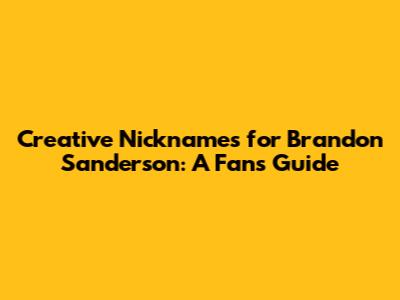 Creative Nicknames For Brandon Sanderson: A Fan's Guide