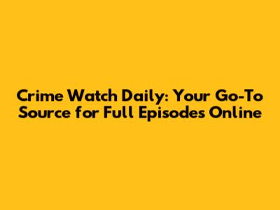 Crime Watch Daily: Watch Full Episodes Online For Free