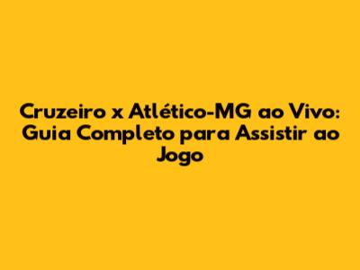 Cruzeiro X Atlético-MG Ao Vivo: Onde Assistir Ao Jogo