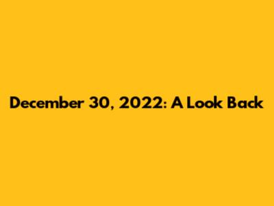 Let's take a trip down memory lane and revisit December 30, 2022. It's fascinating how quickly time flies, right? This article aims to provide a comprehensive look at the key events, trends, and notable happenings that occurred on this particular day. Whether you are a history buff, a curious mind, or simply looking to reminisce, this detailed recap should offer something for everyone.