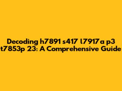 Decoding H7891 S417 L7917a P3 T7853p 23: A Comprehensive Guide