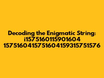 Alright, guys, let's dive headfirst into this intriguing string of characters and numbers: i1575160115901604 1575160415751604159315751576. At first glance, it might seem like a random jumble, but who knows? Maybe there's a hidden message, a secret code, or just a series of numbers that hold a specific significance. Our mission, should we choose to accept it, is to unravel this mystery and see if we can make sense of it all.