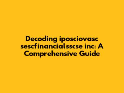 Decoding Iposciovasc Sescfinancialsscse Inc: A Comprehensive Guide