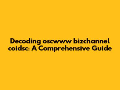 Decoding Oscwww Bizchannel Coidsc: A Comprehensive Guide