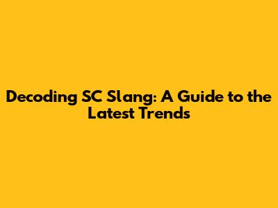 Decoding SC Slang: A Guide To The Latest Trends