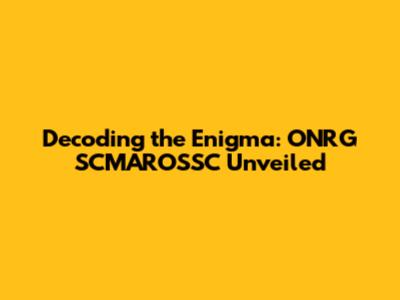 Unraveling the Mystery: What is ONRG SCMAROSSC?