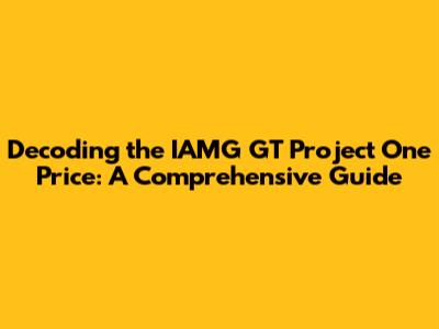 Decoding The IAMG GT Project One Price: A Comprehensive Guide