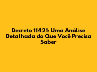Portanto, ao analisar o Decreto 11421, é crucial identificar as áreas específicas que ele abrange e como essas mudanças se conectam com a realidade. Este artigo tem como objetivo fornecer uma visão geral clara e concisa para que você possa entender o que está acontecendo e como isso se aplica a você.