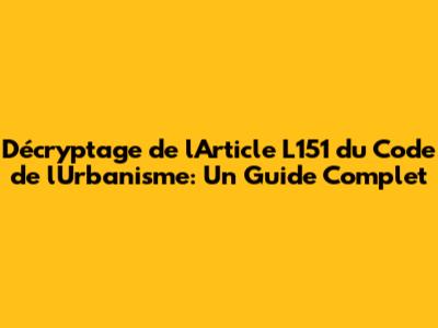 Hey guys, let's dive into something super important: Article L151 of the French Urban Planning Code. Trust me, understanding this little piece of legislation is crucial if you're even remotely interested in building, developing, or just generally understanding how cities and towns are planned and managed in France. So, buckle up because we're about to break it down in a way that's easy to digest, even if you're not a legal eagle! This article is a cornerstone of French urban planning, and it's essential for anyone looking to navigate the often complex world of construction and development. From understanding local planning regulations to knowing your rights when it comes to permits, this guide aims to provide a clear and concise overview of what Article L151 is all about and how it impacts you.