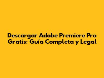 Descarga Adobe Premiere Pro Gratis: Guía Completa Y Legal