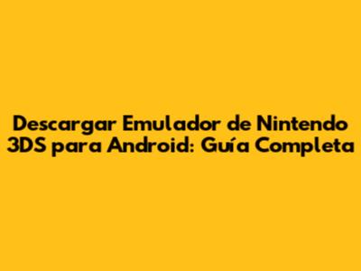 ¿Buscas descargar un emulador de Nintendo 3DS para Android y revivir tus juegos favoritos en tu móvil? ¡Estás en el lugar correcto, amigos! En esta guía completa, te mostraremos todo lo que necesitas saber para descargar, configurar y disfrutar de un emulador de Nintendo 3DS en tu dispositivo Android. Olvídate de buscar por todos lados, aquí encontrarás información detallada y consejos útiles para que la experiencia sea lo más fluida posible. Prepárense para sumergirse en el mundo de la emulación, ¡es hora de jugar!