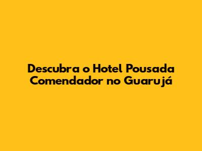 Descubra O Hotel Pousada Comendador No Guarujá