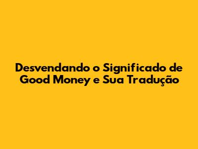 Desvendando O Significado De 'Good Money' E Sua Tradução