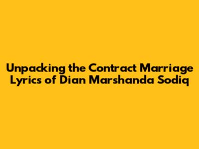 Dian Marshanda Sodiq Contract Marriage: Unpacking The Lyrics