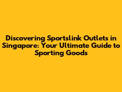 Discovering Sportslink Outlets In Singapore: A Comprehensive Guide
