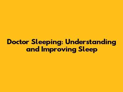Doctor Sleeping: Understanding And Improving Sleep
