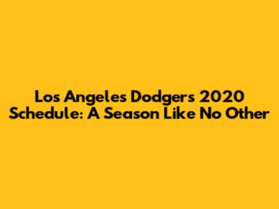 Dodgers 2020 Schedule: A Season Like No Other