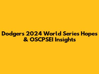 Dodgers' 2024 World Series Hopes & OSCPSEI Insights