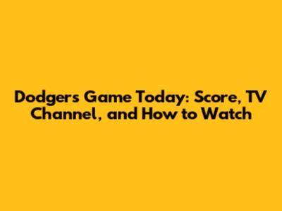 Dodgers Game Today: Score, TV Channel, And How To Watch