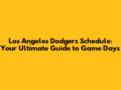 Dodgers Schedule: Games, Dates & More!