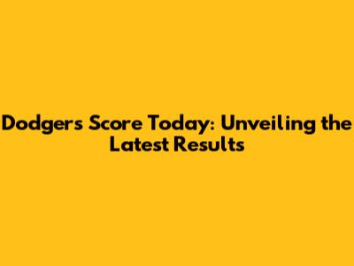 Dodgers Score Today: Latest Updates & Game Highlights