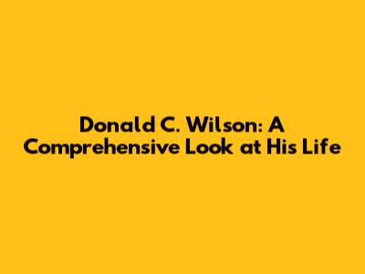 Donald C. Wilson: A Comprehensive Look At His Life