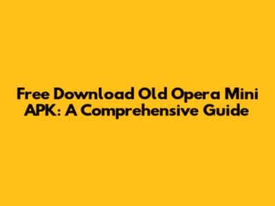 Download Old Opera Mini APK: Free And Secure