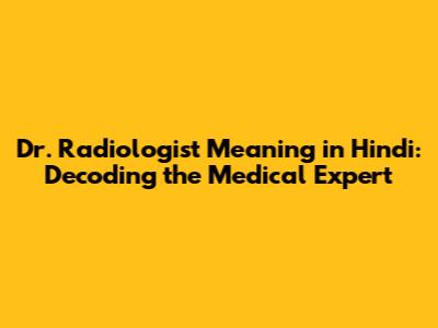 Understanding the Basics: Dr. Radiologist Meaning in Hindi