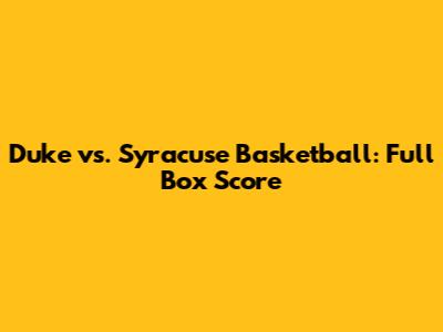 Duke Vs. Syracuse Basketball: Full Box Score
