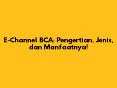 Hey guys! Pernah denger istilah e-channel BCA? Atau mungkin malah sering banget pakai tapi belum ngeh apa itu sebenarnya? Nah, di artikel ini, kita bakal kupas tuntas tentang e-channel BCA. Mulai dari pengertiannya, jenis-jenisnya, sampai manfaat yang bisa kamu dapetin. Yuk, simak baik-baik!