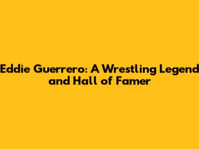 Eddie Guerrero's Hall Of Fame Legacy: A Wrestling Icon