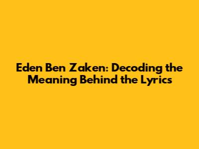 Eden Ben Zaken: Decoding The Meaning Behind The Lyrics