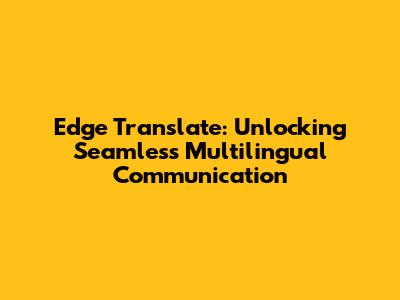 Edge Translate: Unlocking Seamless Multilingual Communication