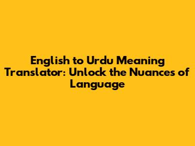 English To Urdu Meaning Translator