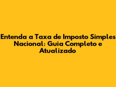 Entenda A Taxa De Imposto Simples Nacional: Guia Completo E Atualizado