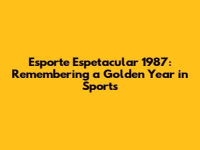 Esporte Espetacular 1987: A Nostalgic Journey Through Sports