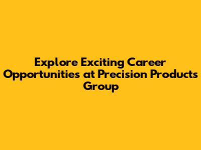 Start Your Career Journey with Precision Products Group Today!