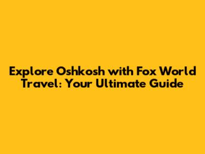 Explore Oshkosh With Fox World Travel: Your Ultimate Guide