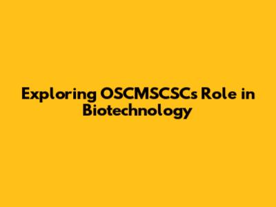 Exploring OSCMSCSC's Role In Biotechnology